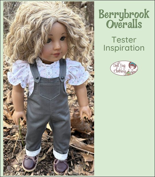 Sew overalls with a children’s vintage-inspired aesthetics. These overalls focus on charm with contrast details in the pocket and cuffs. Paired with your favorite t-shirt this design is playful and perfect for Spring or Summer.The overalls have a straight-leg fit with a fold over cuff at the hem. There is a matching pocket on the front. The pants have a front and back seam. The straps are shaped for the 18 inch doll’s shoulders for a better fit. The straps have a snap closure in the front for easy dressing.This pattern is well suited for beginners with simple straight line sewing.Pattern Features:* Front pocket* Shaped shoulder straps* Snap closure in the front* Flip up pants cuffsDesigned to fit soft body 18 inch Dolls such as American GirlT-Shirt Pattern sold separately - Click Here