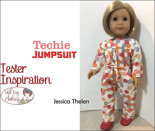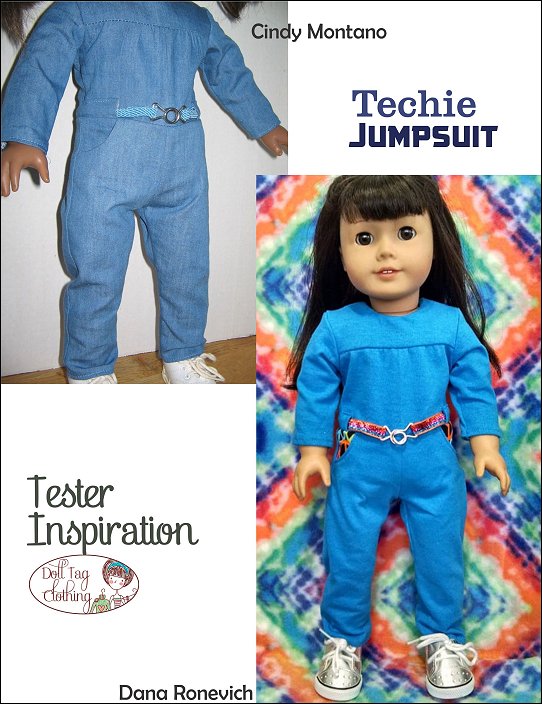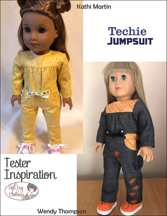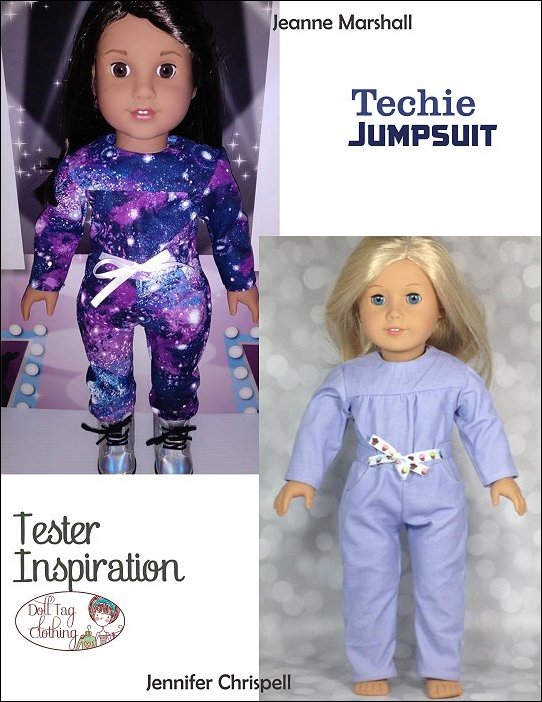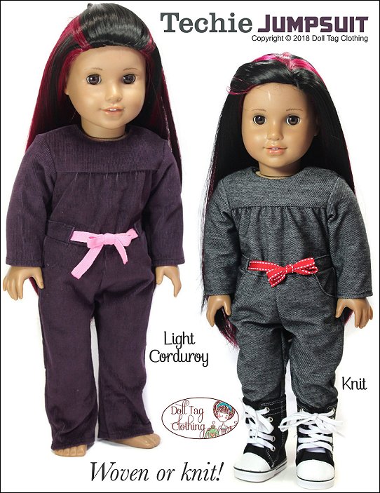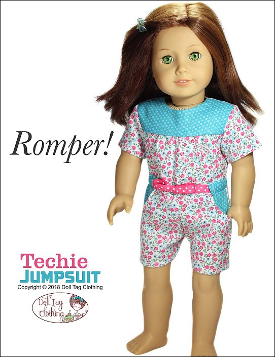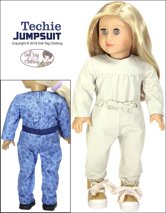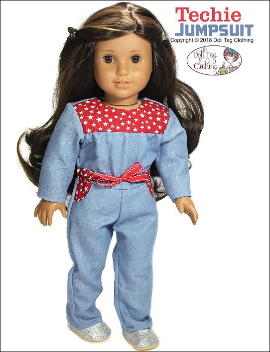 Casual wear jumpsuit inspired by girls who love STEM. This is a fun jumpsuit for your doll to wear and can be made in a variety of color combinations.The Jumpsuit has a bodice with gathers that are flat in the waist. The waistline is finished off with belt band and ribbon ties are added. There are two working pockets on the pants and the jumpsuit closes at the back with hook-and-loop tape.The jumpsuit is designed for knits and wovens!I have included the option for short sleeves and shorts for a cute spring romper!Doll Size: 18 inch dolls like SA Girl Doll, Our Generation or American GirlFabric Guide:• Light to medium weight woven fabrics • Light weight denim that is not too thick will also work • 4oz Denim • Light weight (the thin kind) of corduroy • Medium weight knit fabric.You will Need:• Fabric — 13” x 36”• Lining for bodice — 5.5” x 6.5”• Contrasting fabric (Optional) — 4” x 16”• Ribbon, twill tape or flat braid — 3/8” wide — 22”• Hook-and-Loop tape — 4”
