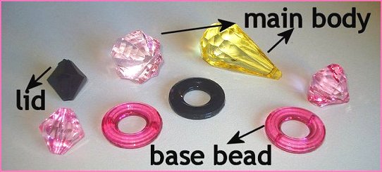 FREE Craft InstructionsThese are just quick and fun wonderful to make. Your options are limitless. Create some for your friends and also great for party favors!Perfume Miniatures are also very cute for doll play!Step 1: Shop for your beads: I use plastic beads as they are light and easier to glue. You need 3 basic sections to make up a perfume bottle: MAIN BEAD forms the shape of the bottleBASE RING: only needed if your main bead cannot stand on its ownBEAD FOR LID: this tops off the bottle