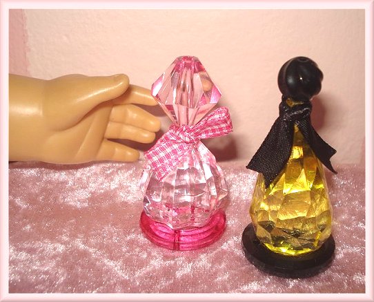 Note on proportion: Take care that you do not make the bottles to big or too small... measure them in your dolls hands... a perfume bottle is about the size of your hand... so should your doll's be. Mine are a bit bigger.