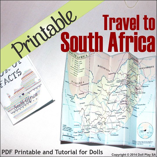 FREE Printable CraftCreate this 'Travel to South Africa' set for your doll.Included to print and make:Book of FactsMap of South Africa - Doll SizeBead BraceletsBead NecklaceSouth Africa Flag PinSouth Africa is a very diverse and vibrant country at the Southern most tip of Africa. There are so many unique things about our country that it would take days to share it all with you. The best part is that we have so many different cultures all in one country!