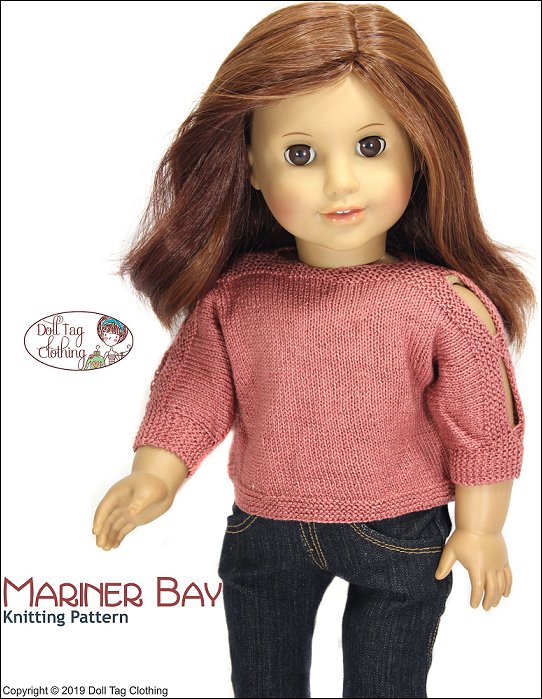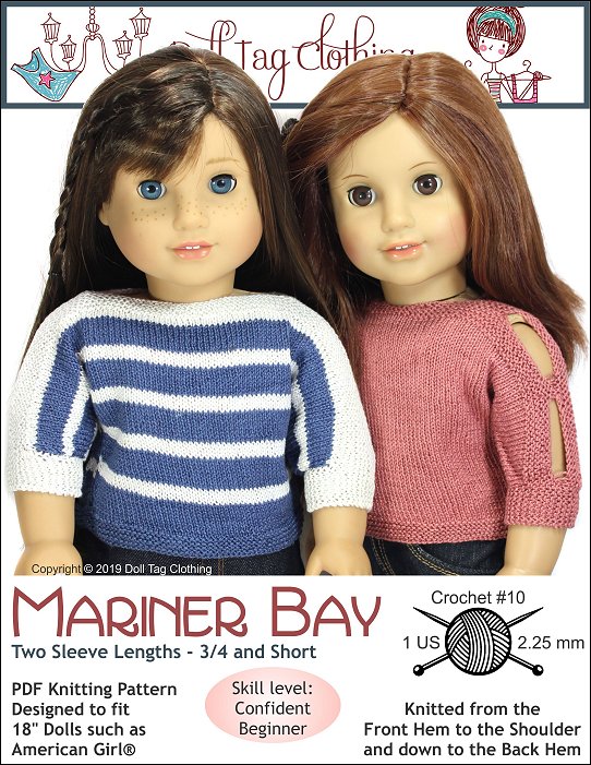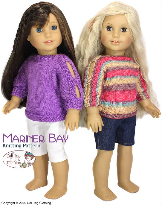 Knit a trendy summer top for your 18 inch doll. This a boat neck and baggy style top with a three-quarter length or short dolman sleeve. The sweater closes with buttons in the back. The peepholes on the sleeves add to the summer flair.The sweater is knitting with fine yarn. Crochet no.5, to create a beautiful doll scale top. This top knits from the front hem, to the shoulders and down to the back hem.Knits with Crochet Knitpicks #10 or Crochet cotton no.5.Doll Size: 18 inch dolls such as American GirlSkill Level: Easy / Confident BeginnerYarn Options• KnitPicks Crochet Curio #10• Elle Crochet #5You will need• Amount Needed — 1 x 50 gr for sweater (±25 gr used)• Needles - Size 1 USA (2¼ mm) circular or double point• 4 buttons for the back