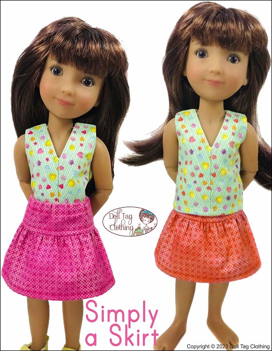 FREE Sewing PatternSew a quick and easy skirt to add to you your doll's mix and match wardrobe. This simple skirt has an elastic waist and yoke with a gathered flair.Skill Level: BeginnersDoll Size: 12 to 13 inch dolls such as Siblies™ and Paola Reina las Amigas