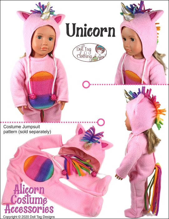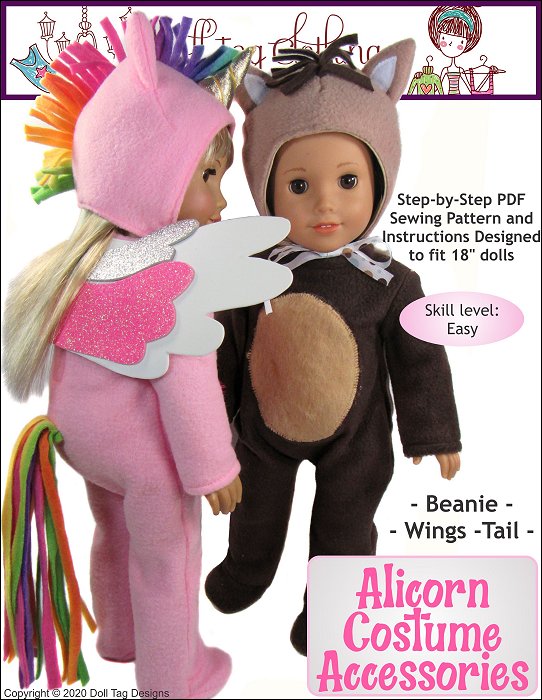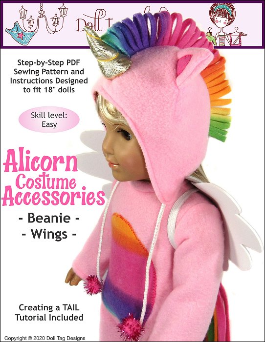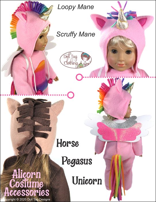 An Alicorn is a Unicorn with wings! This sewing pattern includes accessories to create an Alicorn, Unicorn, Pegasus or Horse costume for your doll.