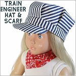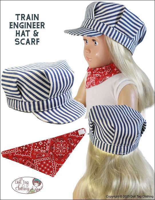 Play dress up and sew a fun train engineer or conductor cap for your doll. This pattern is designed for woven fabrics and for the best look you will want to find some striped fabric to play with. A quick to sew cap that uses fusible interfacing to keep it firm.Doll Size:Designed for 18 inch Soft Body Girl and Boy DollsMaterials:Light weight denim.Light to medium weight woven fabric.