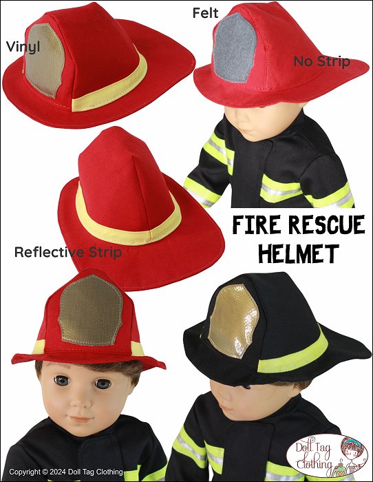 A firefighter helmet is a big part of a firefighter’s turnout gear to provide protection!Completely sew a Fire Rescue Helmet for your dolls using firm cotton. The crown of the helmet only consists of two panels and is lined. It can be sewn with or without reflective strips on the sides. A large badge completes the front.Designed to fit 18 inch dolls such as American GirlDesigned for medium weight woven cotton fabric