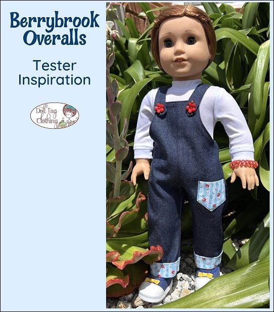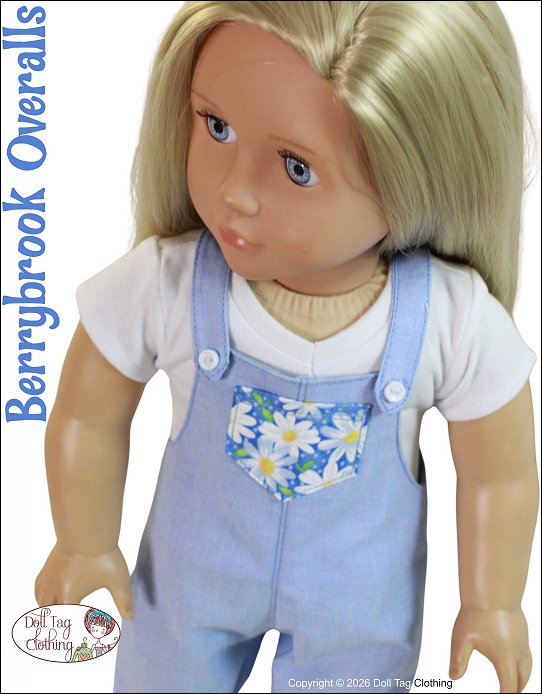 Sew overalls with a children’s vintage-inspired aesthetics. These overalls focus on charm with contrast details in the pocket and cuffs. Paired with your favorite t-shirt this design is playful and perfect for Spring or Summer.The overalls have a straight-leg fit with a fold over cuff at the hem. There is a matching pocket on the front. The pants have a front and back seam. The straps are shaped for the 18 inch doll’s shoulders for a better fit. The straps have a snap closure in the front for easy dressing.This pattern is well suited for beginners with simple straight line sewing.Pattern Features:* Front pocket* Shaped shoulder straps* Snap closure in the front* Flip up pants cuffsDesigned to fit soft body 18 inch Dolls such as American GirlT-Shirt Pattern sold separately - Click Here