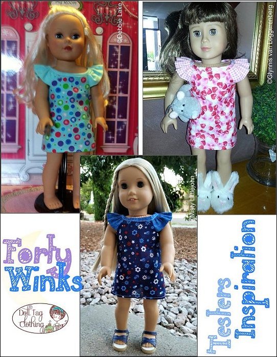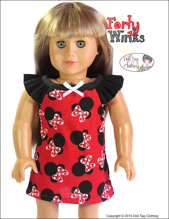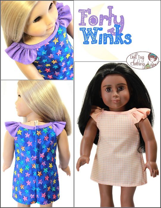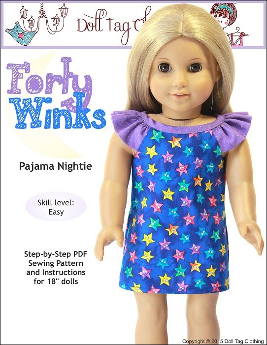 Get ready for bed with this quick-to-sew summer pajama nightie with ruffled sleeves. The top of the dress is lined which makes for a neat sleeve opening. The dress has an easy hook-and-loop closure in the back.Play around with fabric and you can make a summer dress with this pattern. Doll Size:18 inch dolls like SA Girl Doll, Our Generation or American GirlMaterials:Light to medium weight woven fabrics like flannel, seer sucker, cotton and quilter's cottonYou Will Need:•Dress Fabric - 18" x 12" wide (or Fat Quarter)•Contrasting Fabric - 9" x 16"•4" Hook-and-Loop